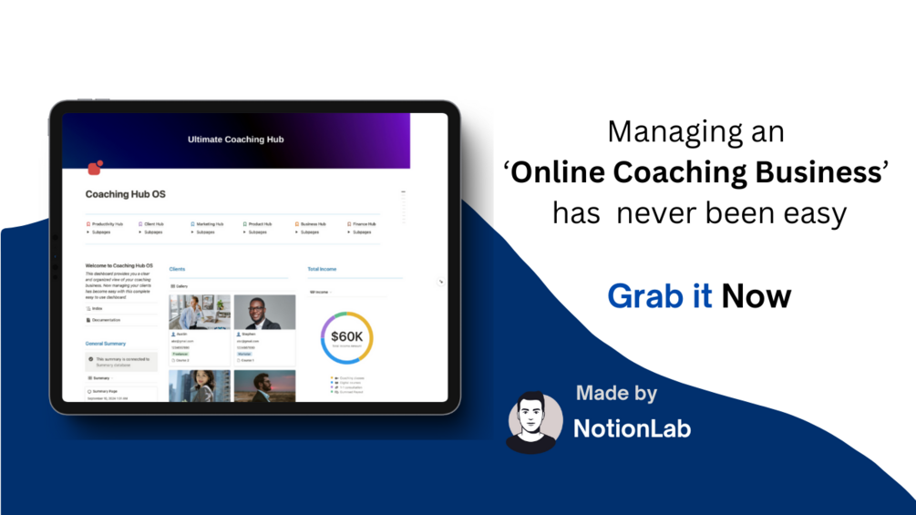 If you are or want to run an online coaching business, this is the best Notion template for a coaching business you can get.