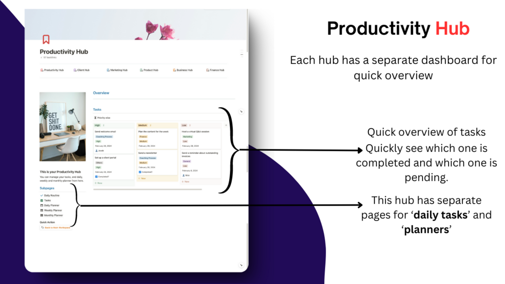 - Productivity Hub- For managing daily, weekly and monthly tasks.